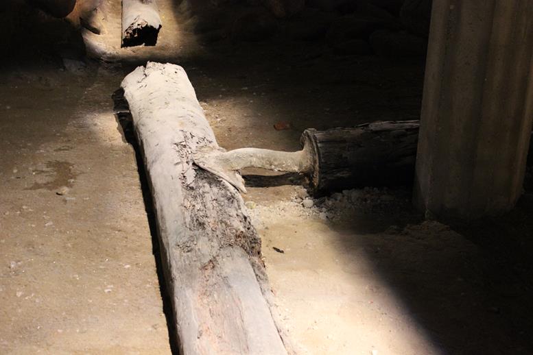 Underneath the Palace are the ruins of the previous palaces. In an emergency you need to use the ladder to get back up. Also old wooden pipes joined with lead.