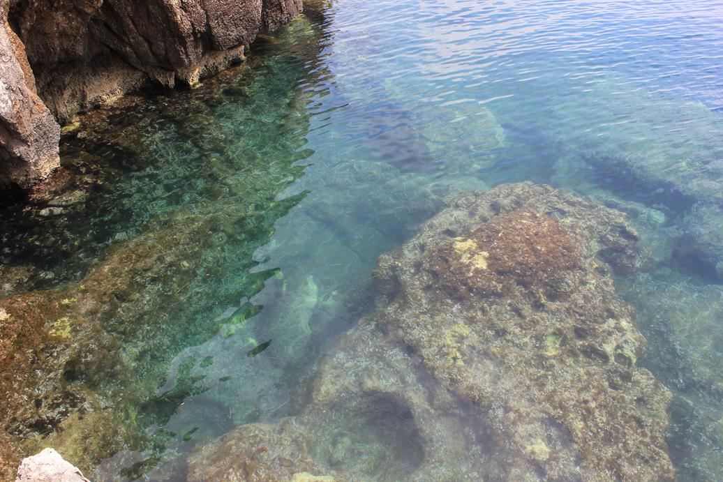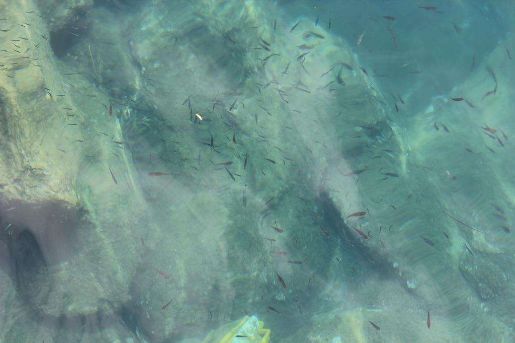 Fish swimming at the end of the pier.