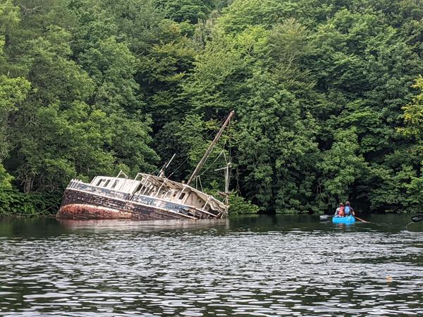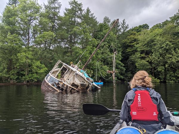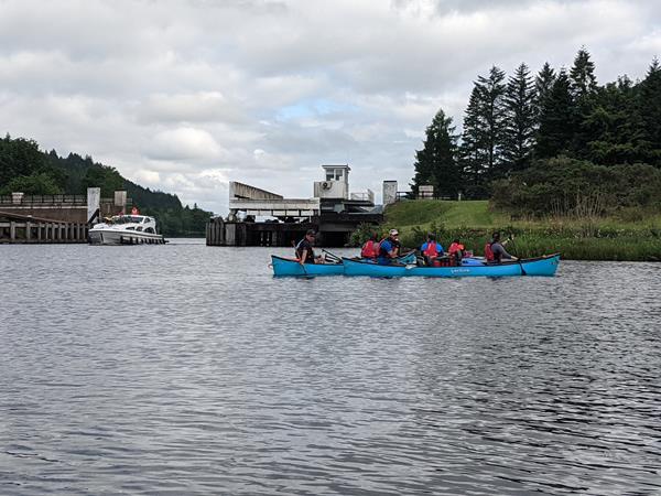 Loch Lochy.Reaching the canal for Portage.The lock at the end of Loch Lochy.Along the canal to Loch Oich.Waiting for a boat to come under the swing bridge.Loch Oich.Lunch stop.Sunken ship on Lock Oich.Loch Ness monster skeleton or fallen tree?Our camp on Loch Oich.Joe (our guide’s) tent.The islands on Loch Oich.Waterfall behind the camp.